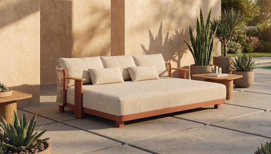 Rope-detailed frames with plush all-weather cushions. Sculptural seating offering resort-like comfort for every season. View Fern Collection.