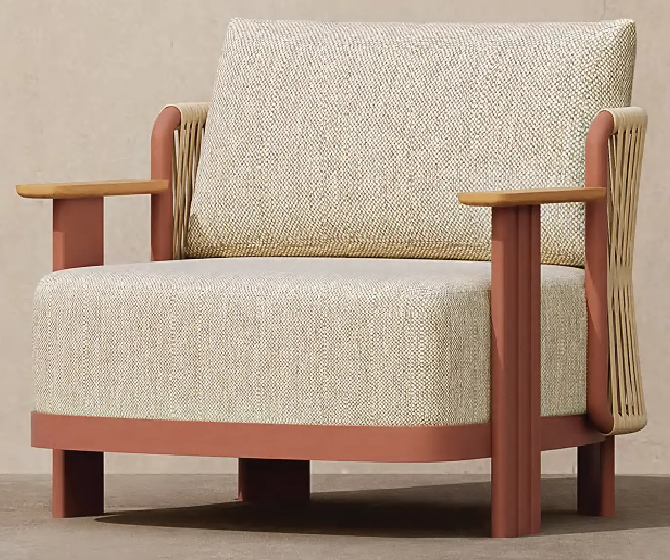 A sleek blend of comfort and craft, the Fern Sofa features rope-detailed arms, plush weather-proof cushions, and a refined silhouette built to last through every season.